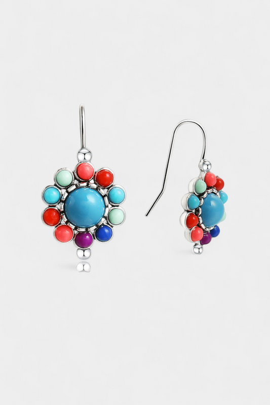 Vícebarevné kulaté náušnice s tyrkysovou barvou