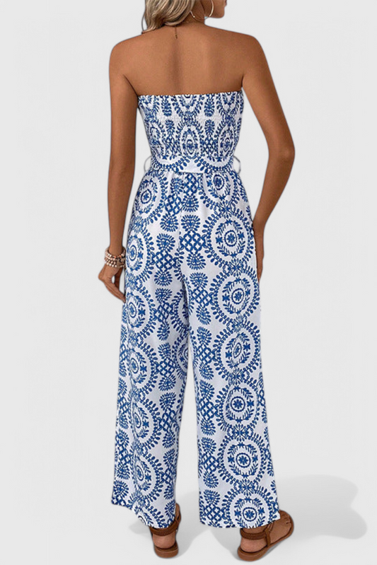 Overal Brina s odhalenými rameny a širokými nohavicemi, batikované, s rozparkem