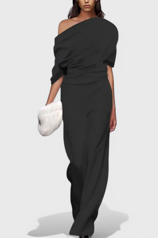 Asymetrický výstřihový overal Sahar s dlouhými uzlovými rukávy