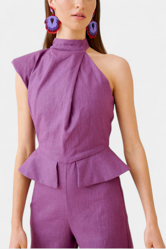Šeříkový overal s širokými nohavicemi a lehkou elegancí