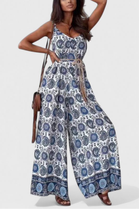 Elegantní overal Isaura s širokými nohavicemi a výstřihem do V