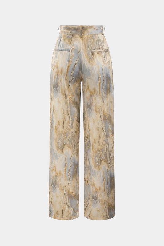 Kalhoty rovného střihu Inna s vysokým pasem a mramorovým potiskem