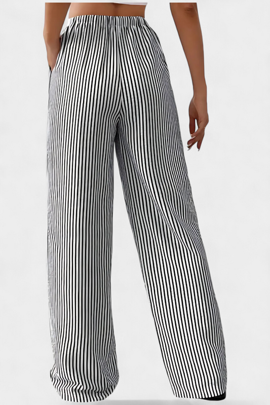 Lehké kalhoty Sabrina s rovnými nohavicemi a nastavitelným pasem v pruhovaném provedení