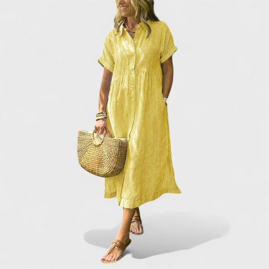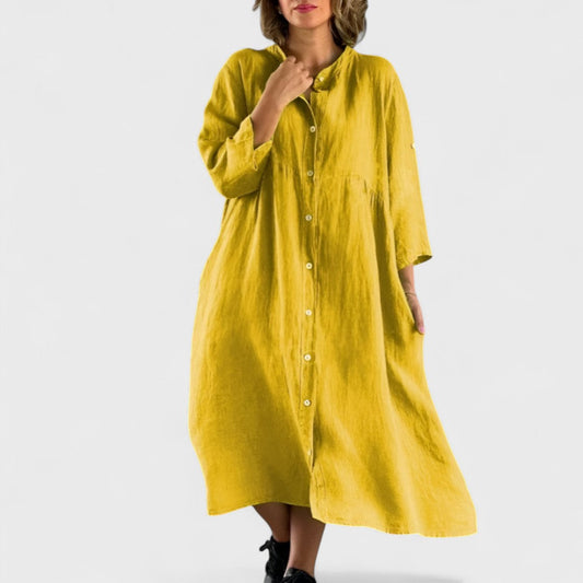 Kaya - Maxi šaty s výstřihem a balónovými rukávy