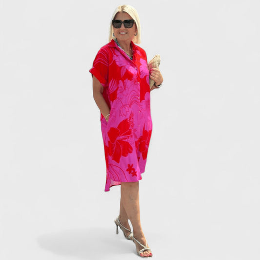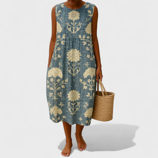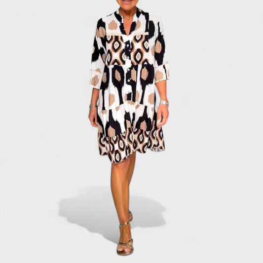 Catrisa - Kvetinový vzor V-krk šaty s kapsami