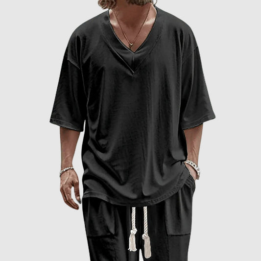 MOONDOKI– Žebrované tričko s výstřihem do V
