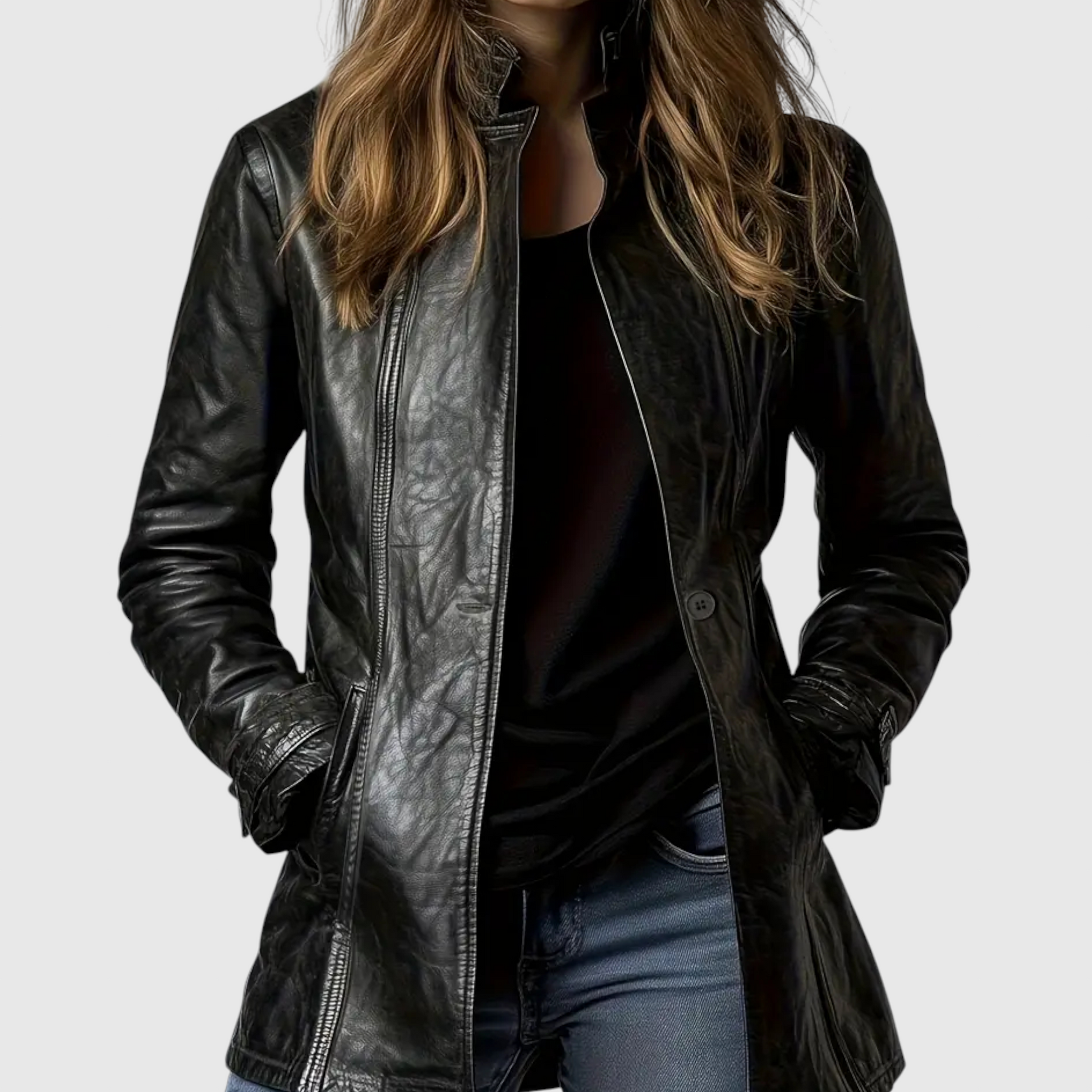 Adelina - Kožený kabát z italské kůže s knoflíky
