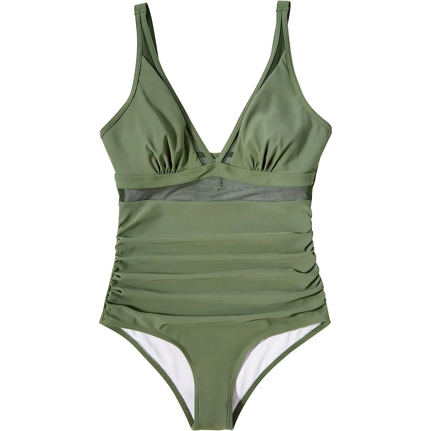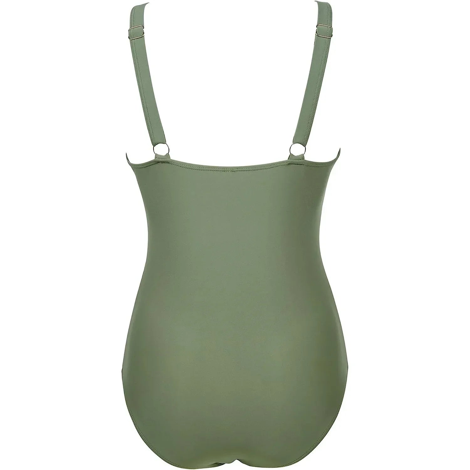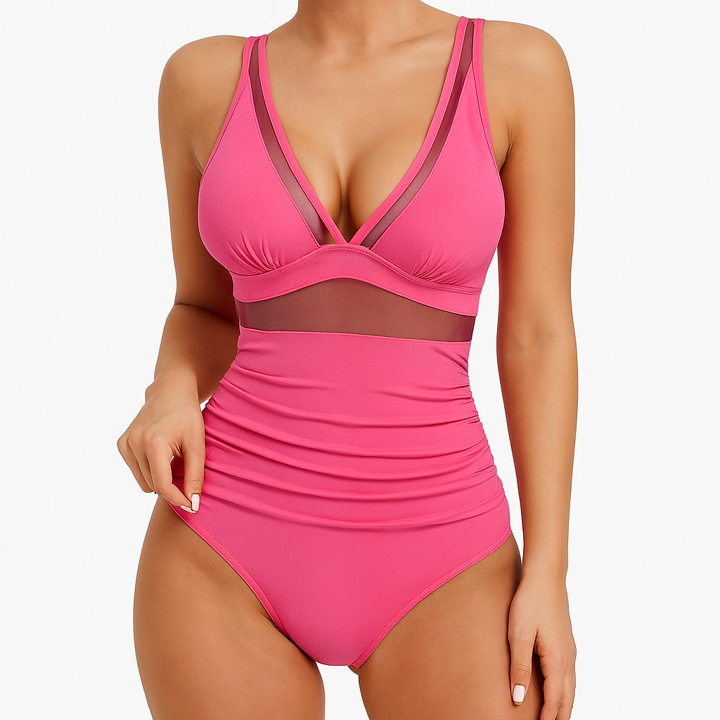 Plavky Aura Serena kombinují smyslnost a sofistikovanost v jednodílném střihu. Strategicky umístěné průsvitné panely ve výstřihu a pase zefektivňují siluetu, zatímco nařasená látka v oblasti břicha tvaruje postavu. Ideální pro sebevědomý a stylový vzhled na pláži nebo u bazénu. K dispozici v několika elegantních barvách.
