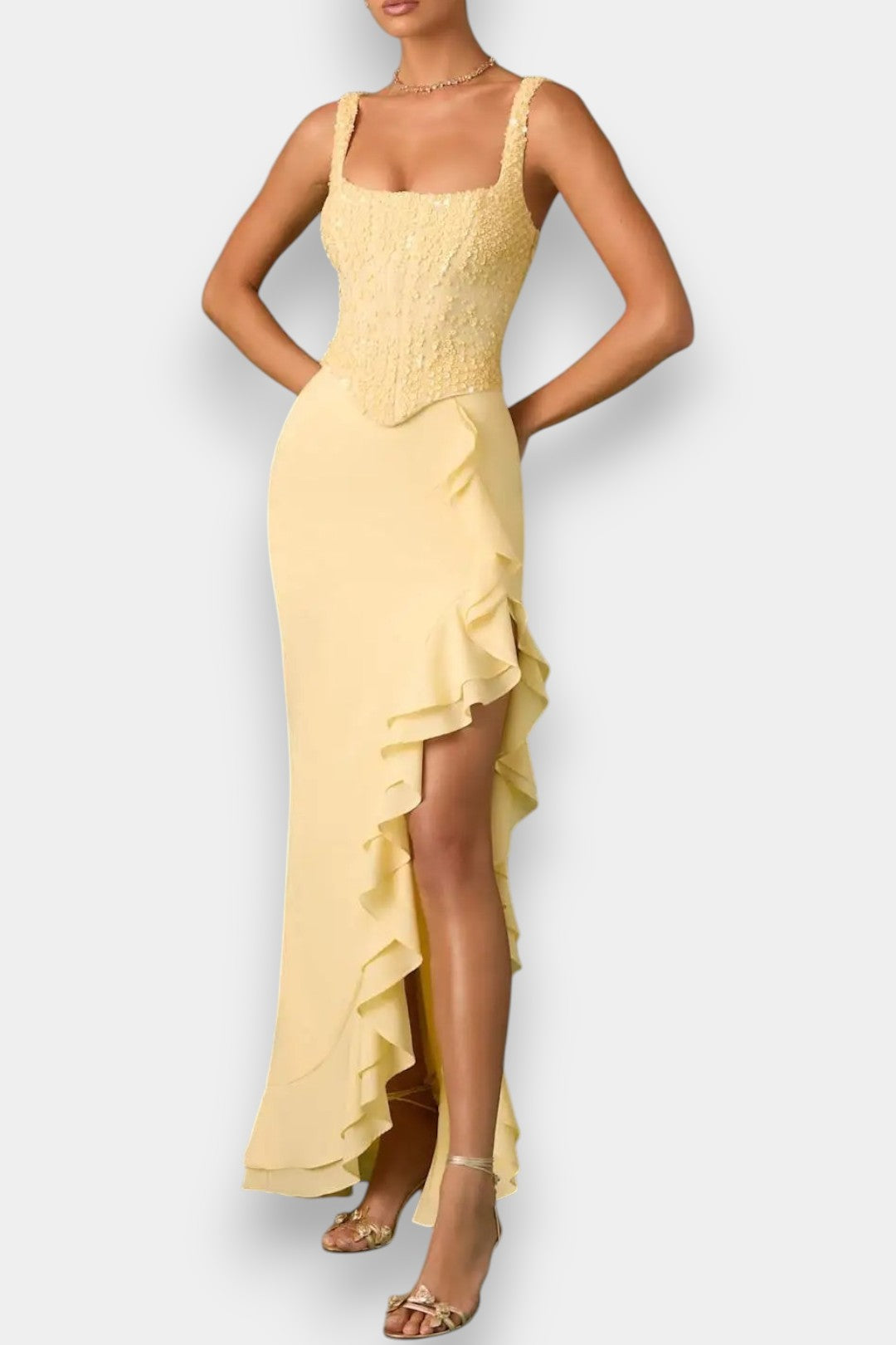 Asymetrický volánový lem – Vytváří krásný splývavý střih a prodlužuje nohy.
