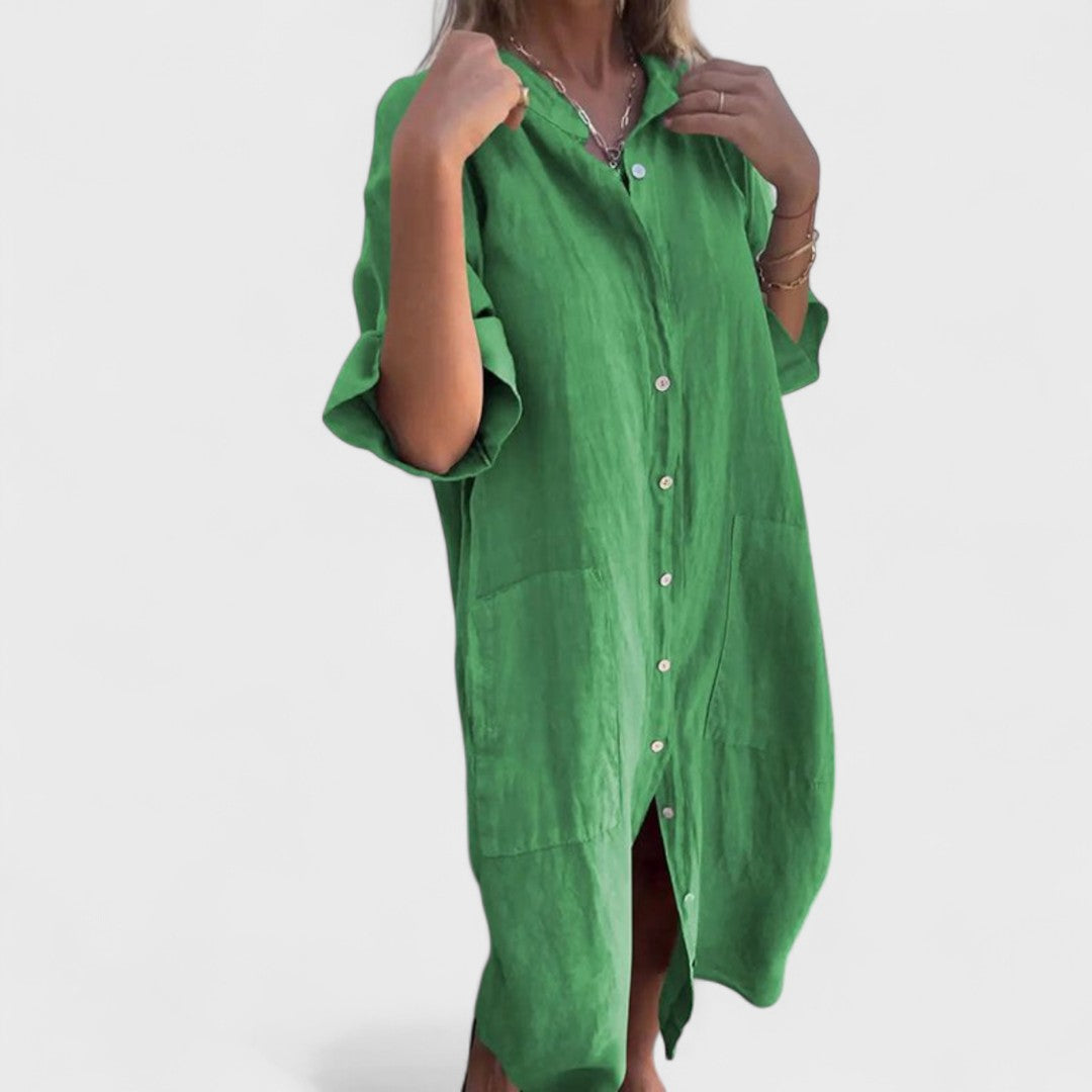 Šaty Petra jsou stvořené pro ty dny, kdy chceš být elegantní, ale zároveň se cítit svobodně. Lehký design inspirovaný ibizským stylem se volně rozprostře kolem těla, zaručuje skvělý pocit i při vysokých teplotách. Délka ke kolenům nabízí optimální kombinaci pohodlí a stylu.