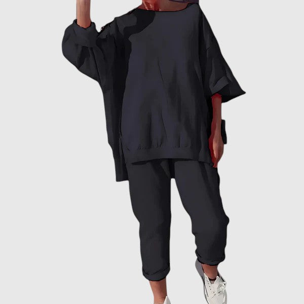 Dopřejte si pohodlí a styl s domácí soupravou Gianna. Tento volný střih a moderní design vám zajistí maximální komfort při každodenním nošení doma i během volného času.