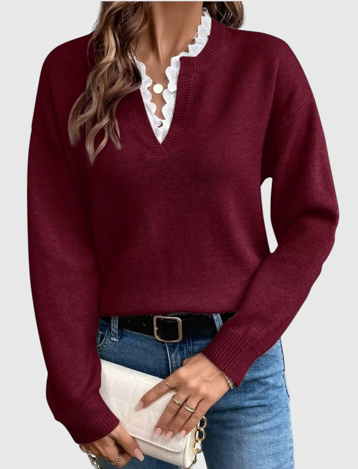 Karolína – Prémiový svetr s krajkou ve výstřihu do V