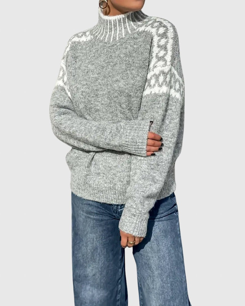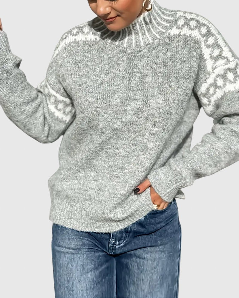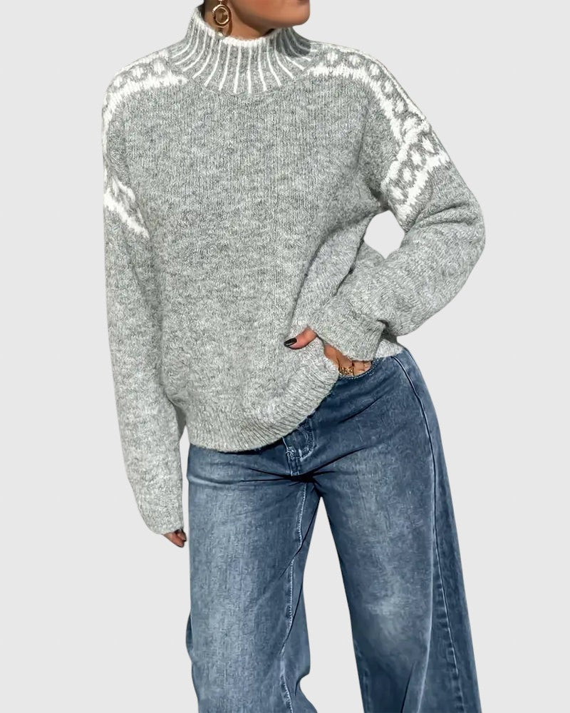 Svetr Liv je perfektní na chladné dny. Měkký pletený materiál a vysoký límec vás příjemně zahřejí, zatímco skandinávský vzor mu dodává nadčasový a zimní vzhled.