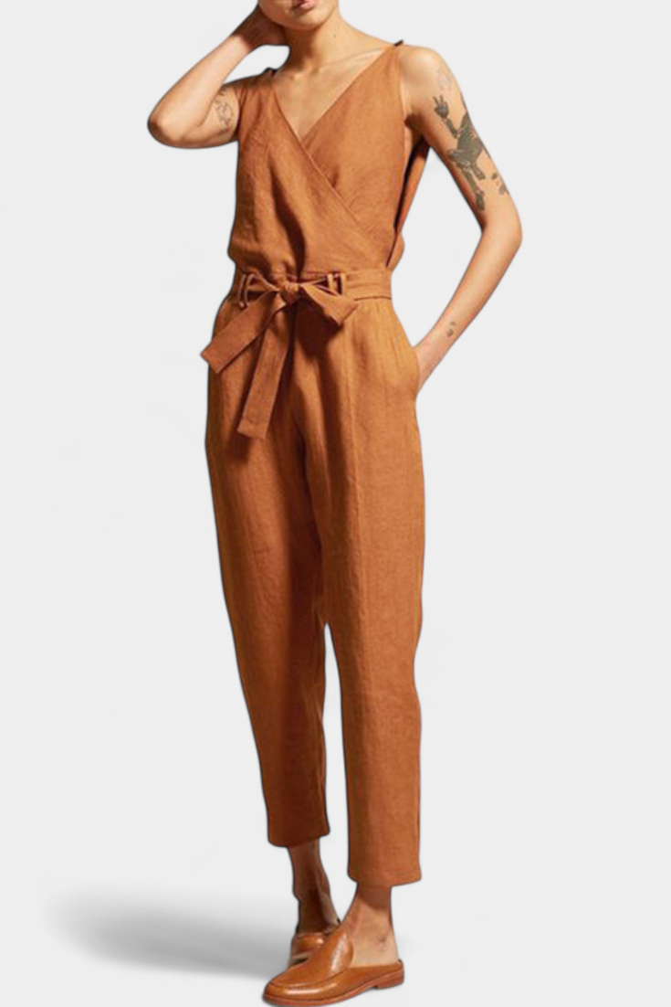 Bavlněný overal Maggie bez rukávů s výstřihem do V a překříženým pasem