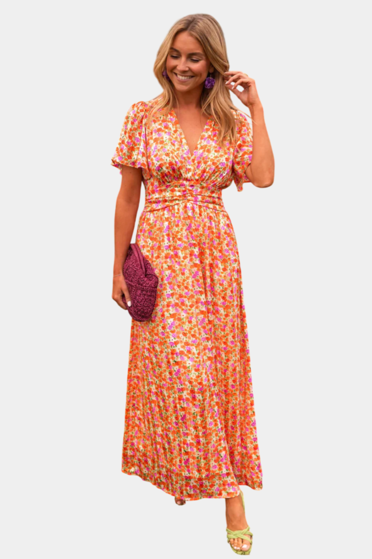 Zářivé, ženské a hravé – květinové šaty Marlene™ oslňují barevným květinovým vzorem, který okamžitě evokuje letní náladu. Krátké rukávy , výstřih do V a rafinovaný pas pod poprsím vytvářejí elegantní siluetu, zatímco lehce splývavá látka dodává lehký pocit.