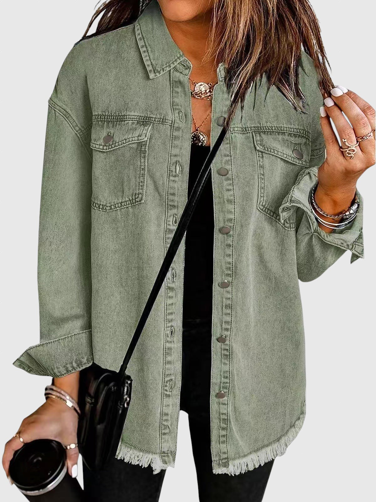 • Funkčnost se stylem: praktické kapsy a kovové zapínání dodávají osobitost, aniž by ztratily na užitečnosti.