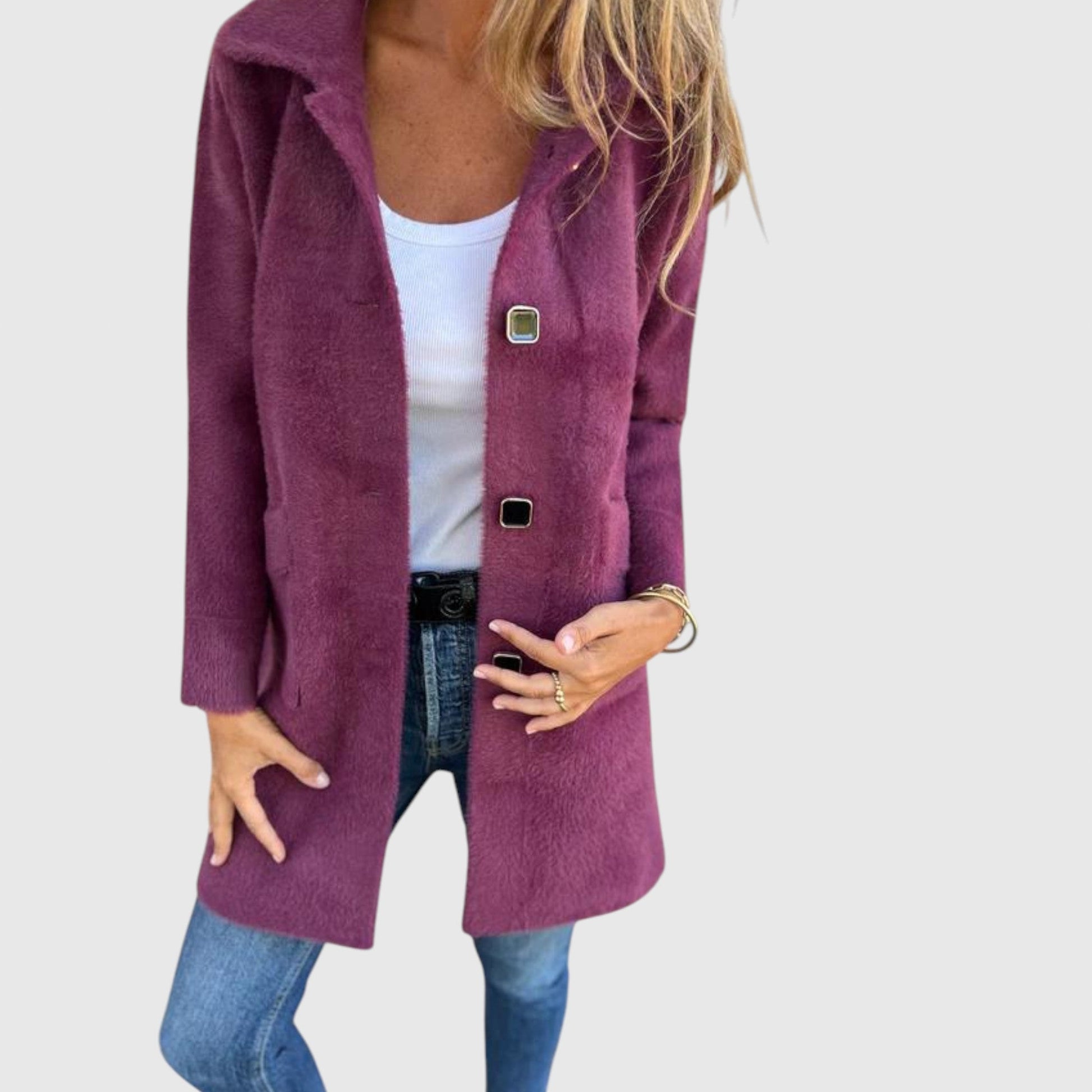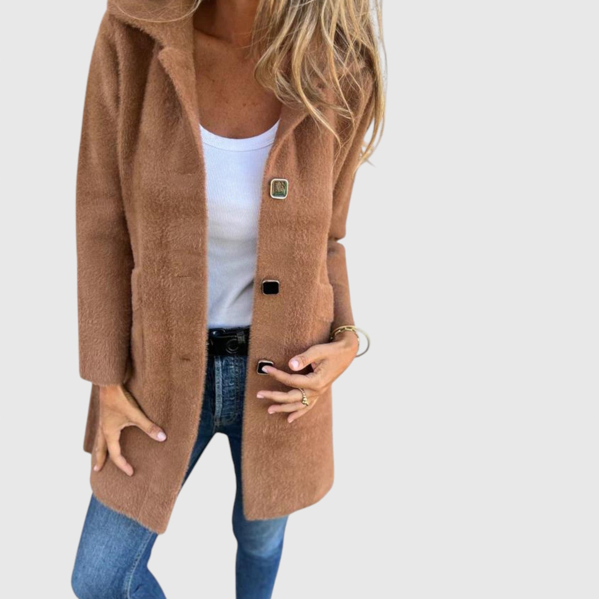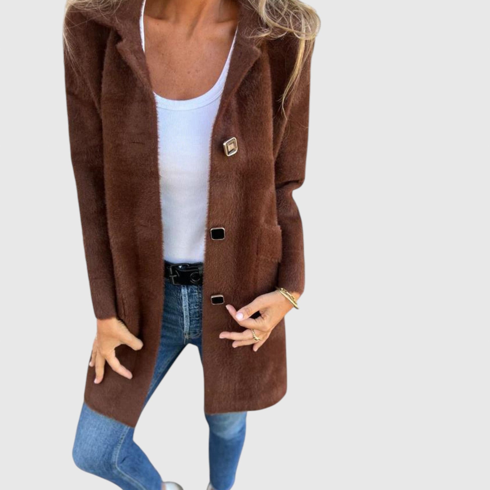 • Teplý a útulný – Poskytuje pohodlí i v chladnějším počasí, aniž byste musela obětovat styl.