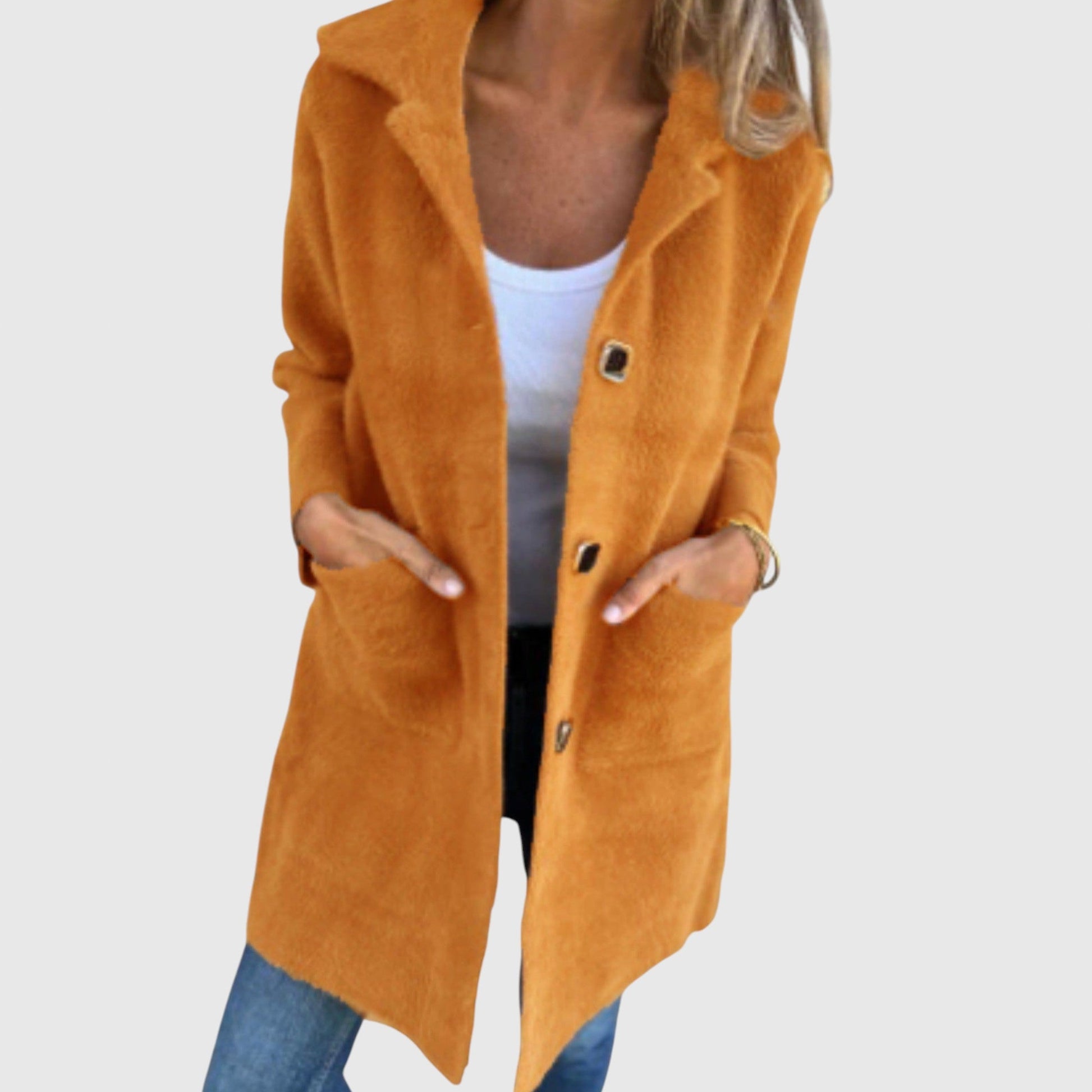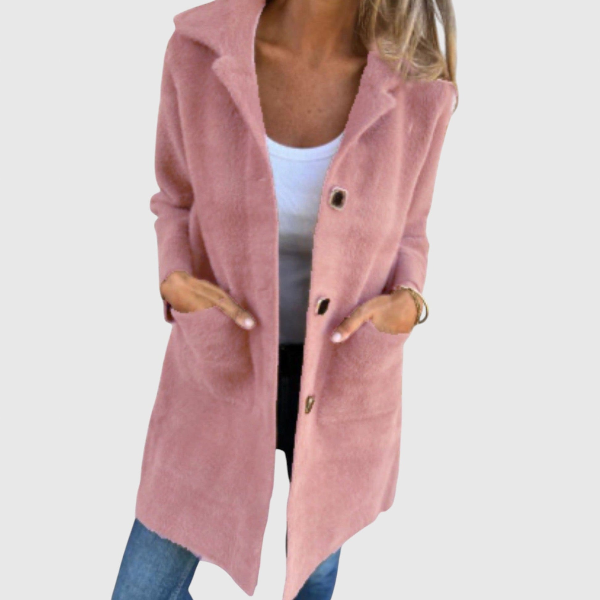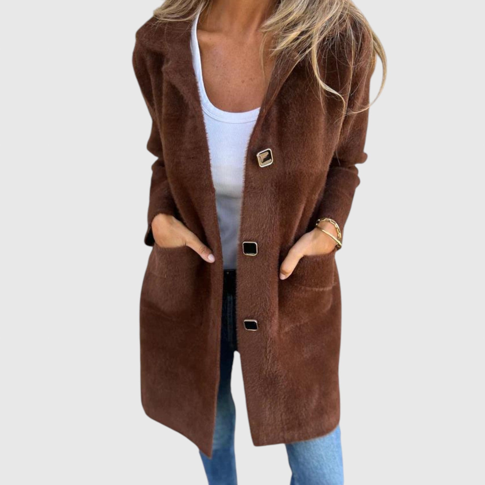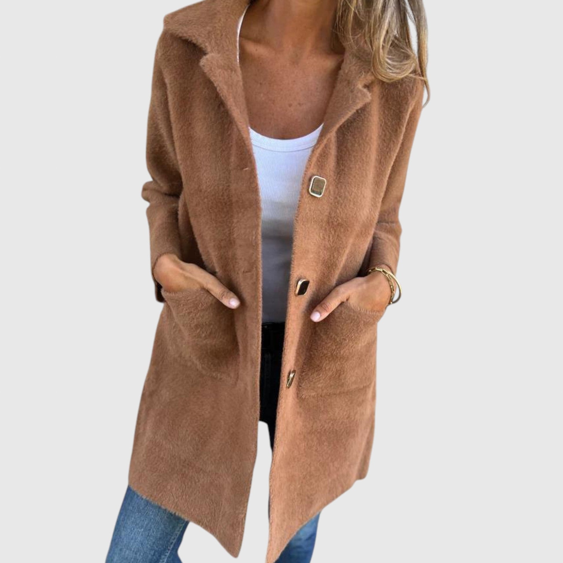 • Teplý a útulný – Poskytuje pohodlí i v chladnějším počasí, aniž byste musela obětovat styl.