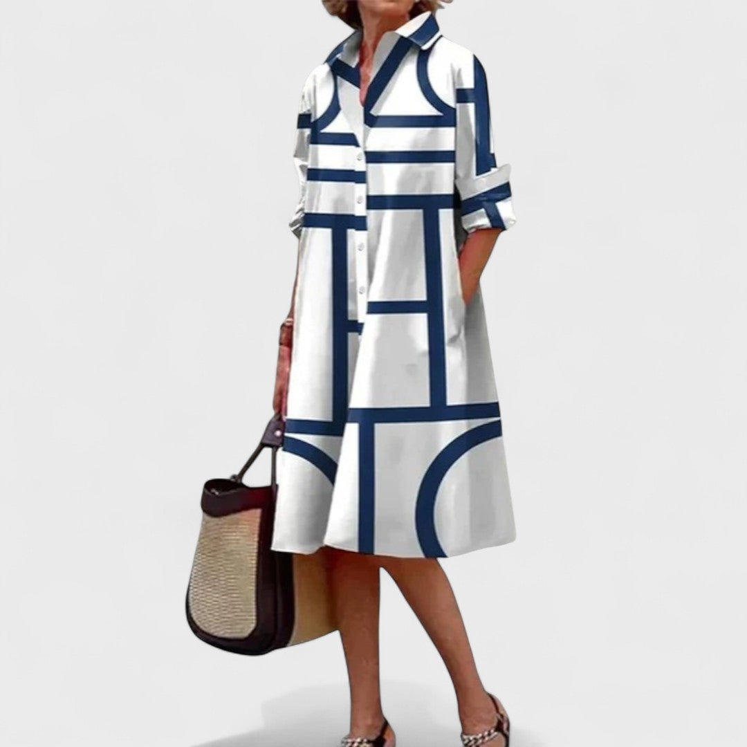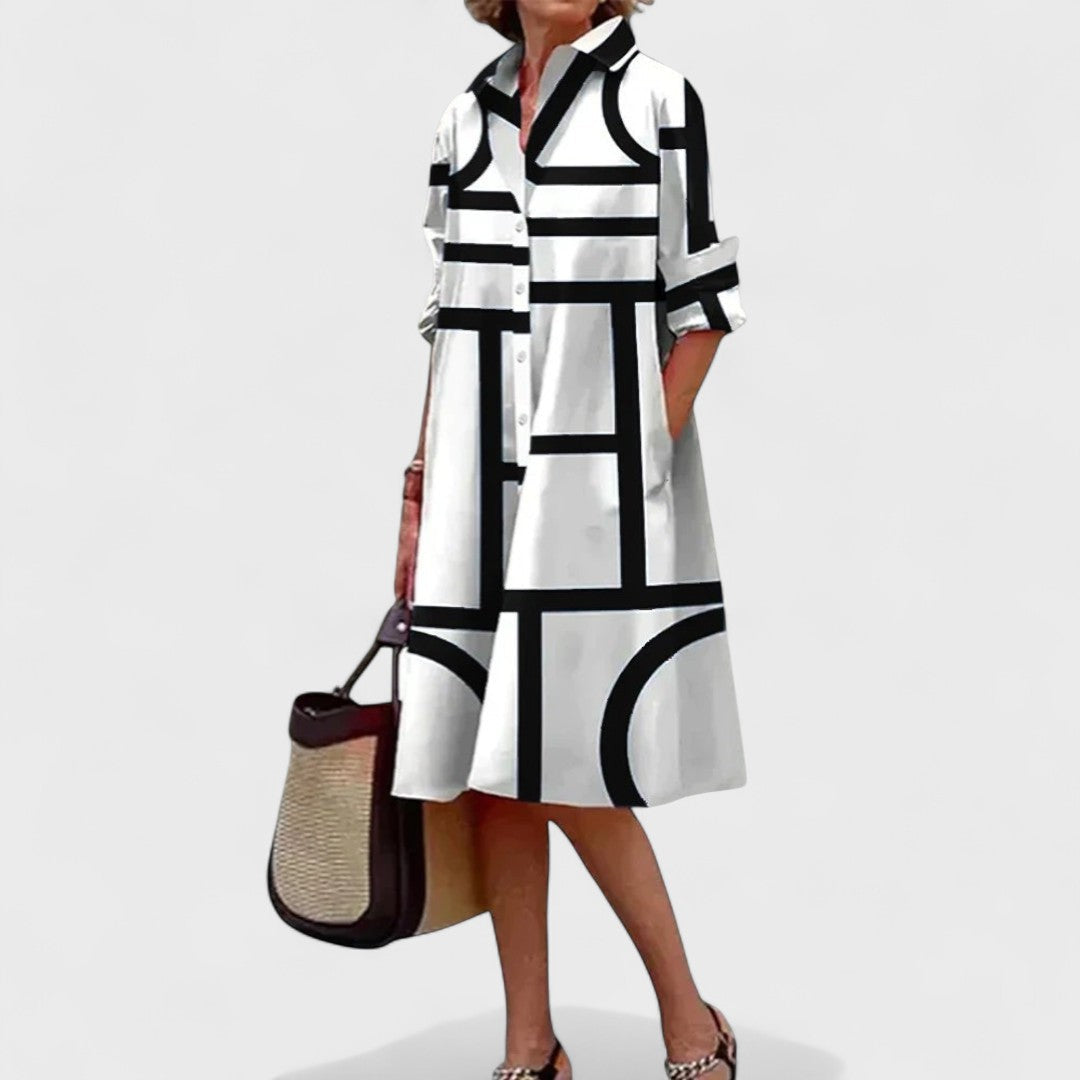 Šaty Stella zaujmou výrazným geometrickým vzorem v čistých liniích a sofistikovaném střihu. Jemný výstřih a ladně definovaný pas dávají vyniknout ženským křivkám, zatímco splývavá sukně se podehrává při chůzi – vytvoří tak krásný efekt pohybu. Vhodné jak do kanceláře, tak na stylovou večeři nebo umělecký večírek.