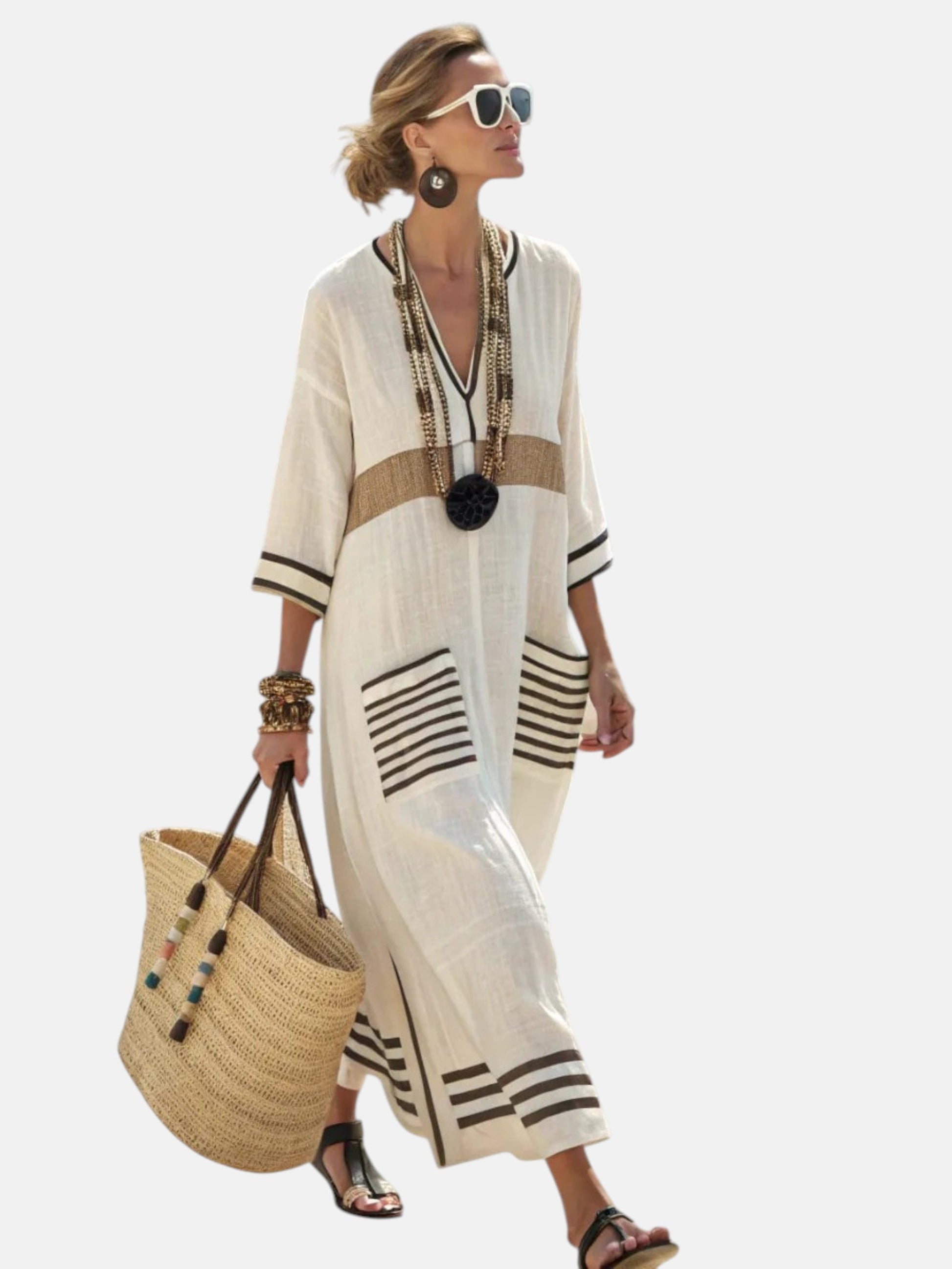Díky perfektnímu střihu, vynikající kvalitě a nadčasovému designu v sobě tyto dlouhé, volné šaty spojují eleganci a pohodlí, což z nich činí ideální volbu pro jakýkoli typ postavy a příležitost.
